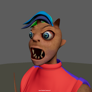 I modify quite a bit of the character and add some fun elements like the horns and teeth. I export the file from Zbrush and import it into Maya.